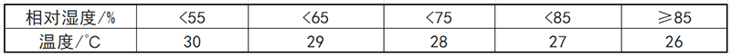 空氣調節廠房內不同濕度下的溫度要求(上限值)