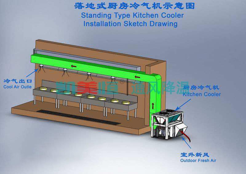 餐飲業廚房一般空間都不是很大,在廚師炒飯的時候會有大量的熱量產生,對廚房后堂進行新風交換和降溫就顯得特別有必要。上海虹貝實業有限公司專業生產廚房冷風機,可以對后廚環境進行降溫使用,效果好得很。